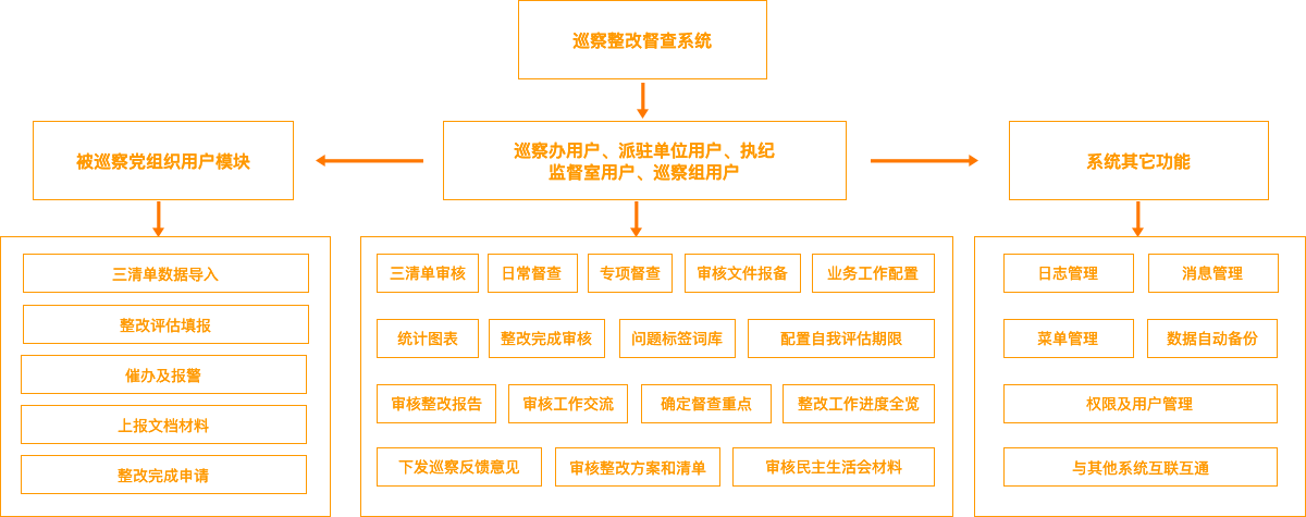 包含巡察全覆蓋、信息互聯、考核評價、信訪舉報、雙底稿、過(guò)程管控等功能(néng),加強日常事(shì)務管理。