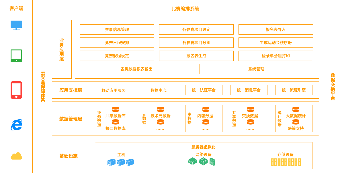 體育比賽編排系統主要實現在競賽開(kāi)始前編排秩序冊,準備比賽用的各種(zhǒng)表格;競賽中及時(shí)公布比賽成(chéng)績,臨場編排複、決賽秩序;競賽結束後(hòu)統計和整理成(chéng)績記錄,編印大會(huì)成(chéng)績冊。