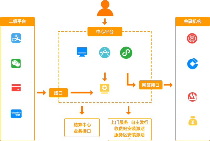 以應用系統的方式處理ETC網發(fā)服務平台的“收單”和業務服務數據,并以數據接口的形式將(jiāng)數據提供給ETC移動發(fā)行一體機,線下再通過(guò)多功能(néng)手持機完成(chéng)ETC卡及OBU設備的二發(fā)、激活等服務。